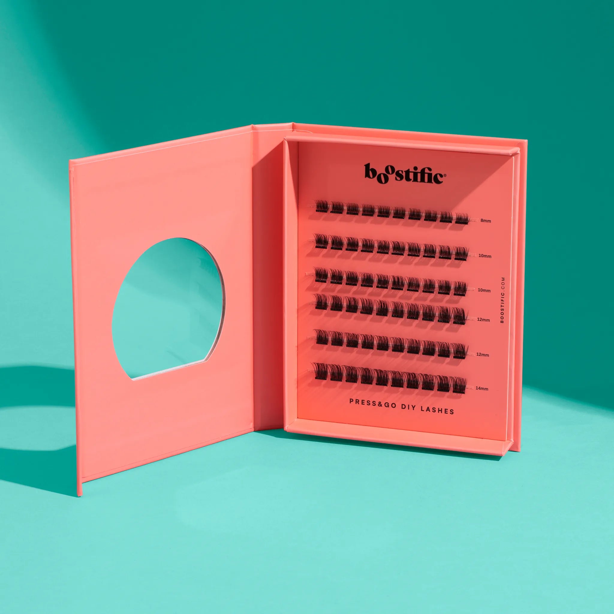 The Boostific Press&Go DIY False Lashes are the perfect combination of professional lash extensions and at-home convenience. Pre-glued clusters ensure a clean, quick, and precise application—no extra adhesive needed. Once applied, they seamlessly blend with your natural lashes while creating a subtle eyeliner effect, thanks to the darker lash roots that softly frame the eyes.