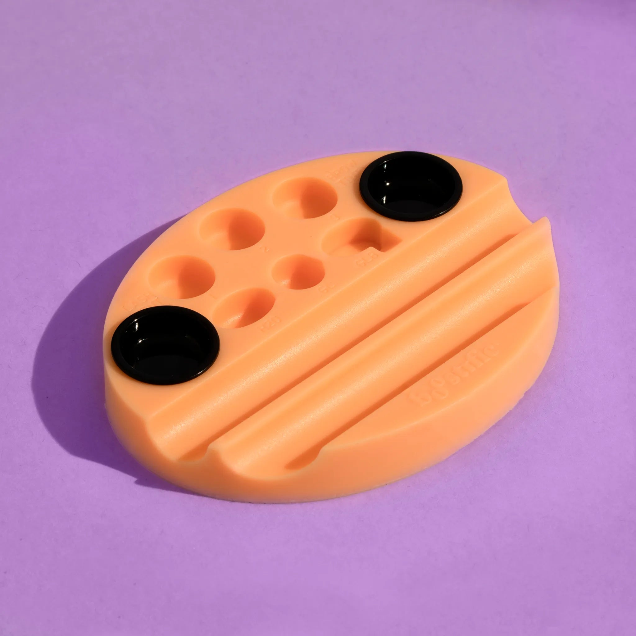 The palette is made of silicone and has a soft touch. The hollows on the palette were designed to support the fastest work process, as each hollow has its own role.