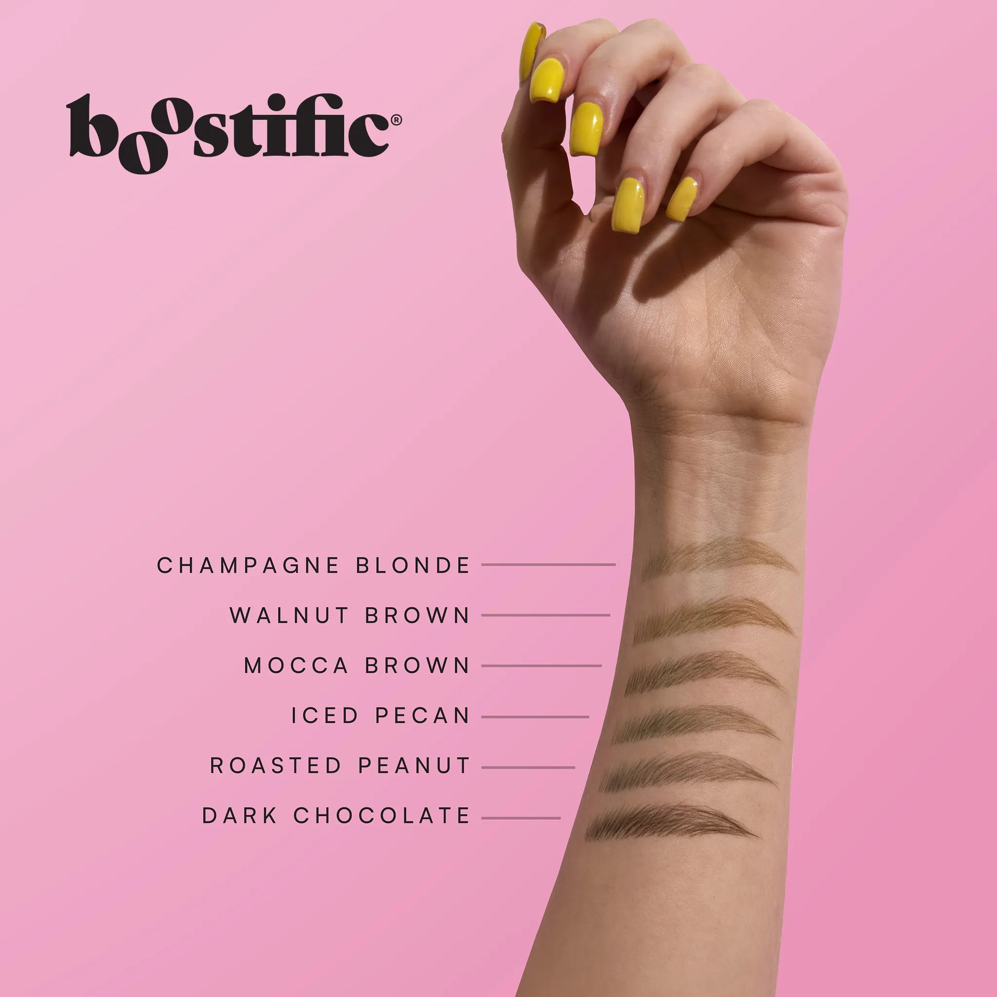 Shades for every style: Boostific Brow-on-the-go comes in multiple shades – Mocha Brown, Iced Pecan, Dark Chocolate, Roasted Peanut, Walnut Brown, Champagne Blonde – so you can find the perfect match for any brow tone and skin color.