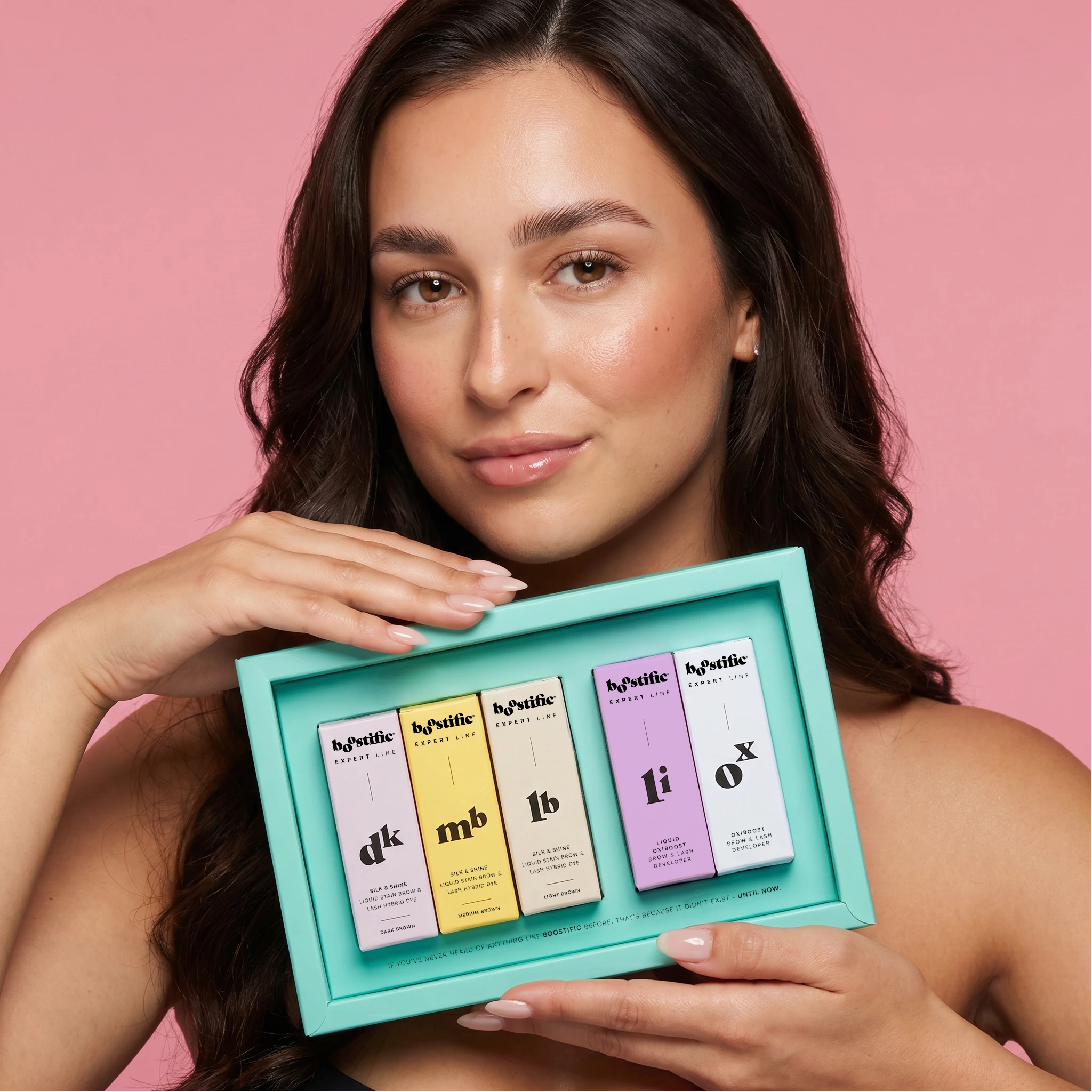 The Boostific Warm It Up Collection is a professional eyebrow dye set created for warm to neutral brown shades. It offers versatile color options from lighter brown to deeper brunette tones, helping you create natural, balanced, and personalized brow results.